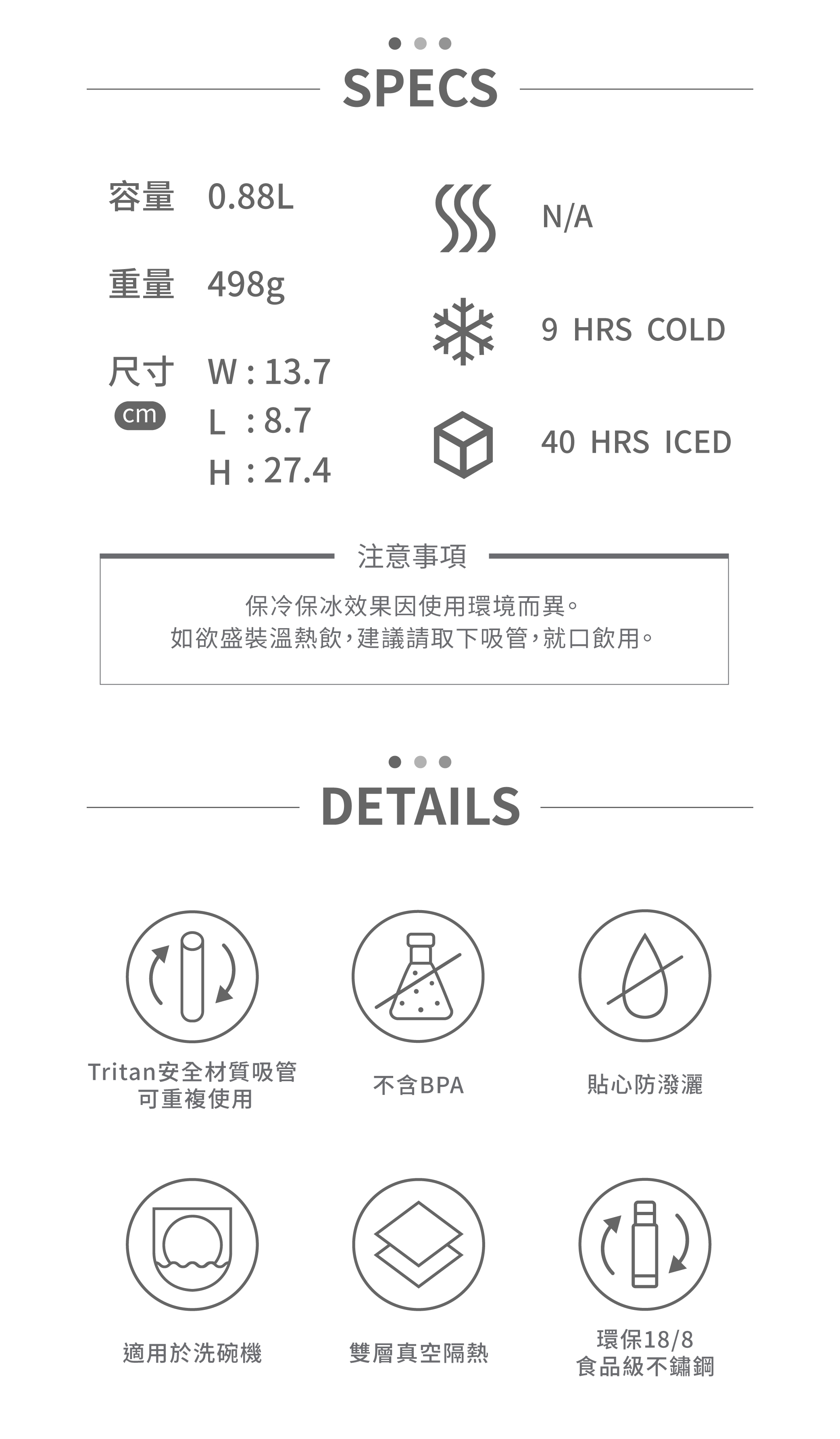 18/8 (304) 食品級不銹鋼,不含 BPA