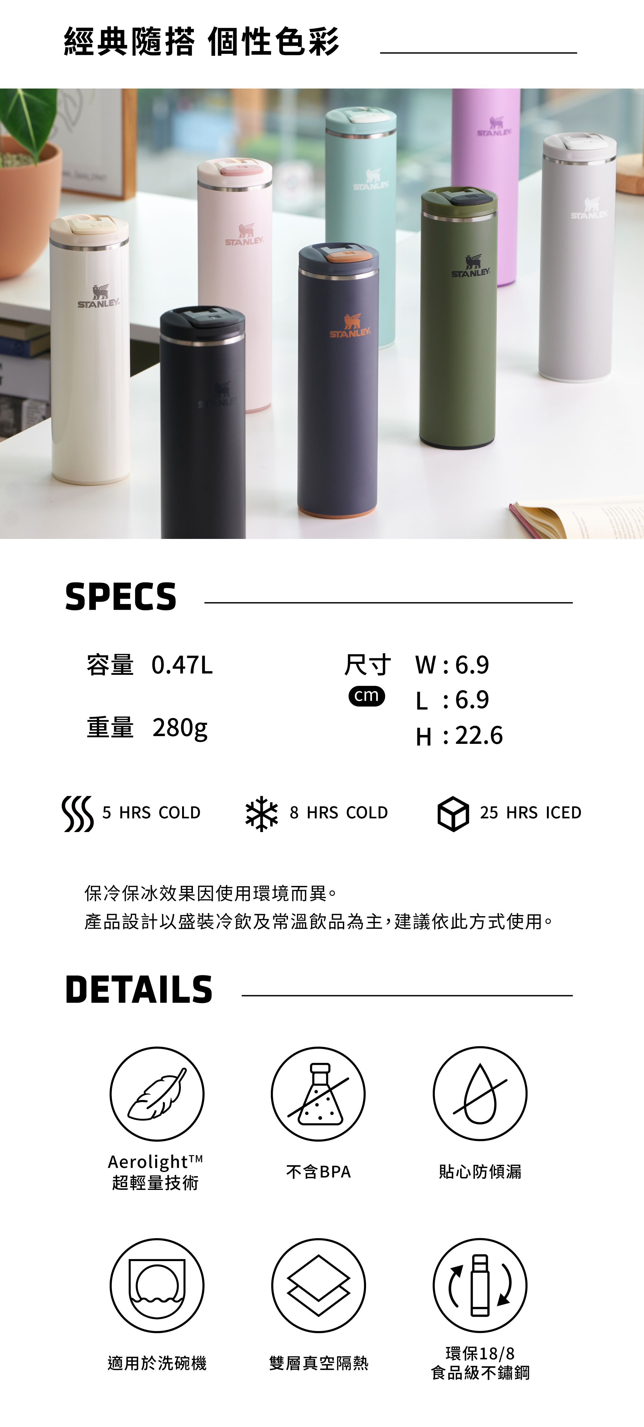 STANLEY 輕重力系列 Aerolight 翻蓋輕盈杯 0.47L / 山櫻粉 (預購)