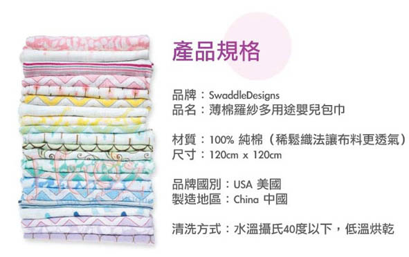 內含:頂級多用途嬰兒包巾*1+薄棉羅紗多用途嬰兒包巾*1
