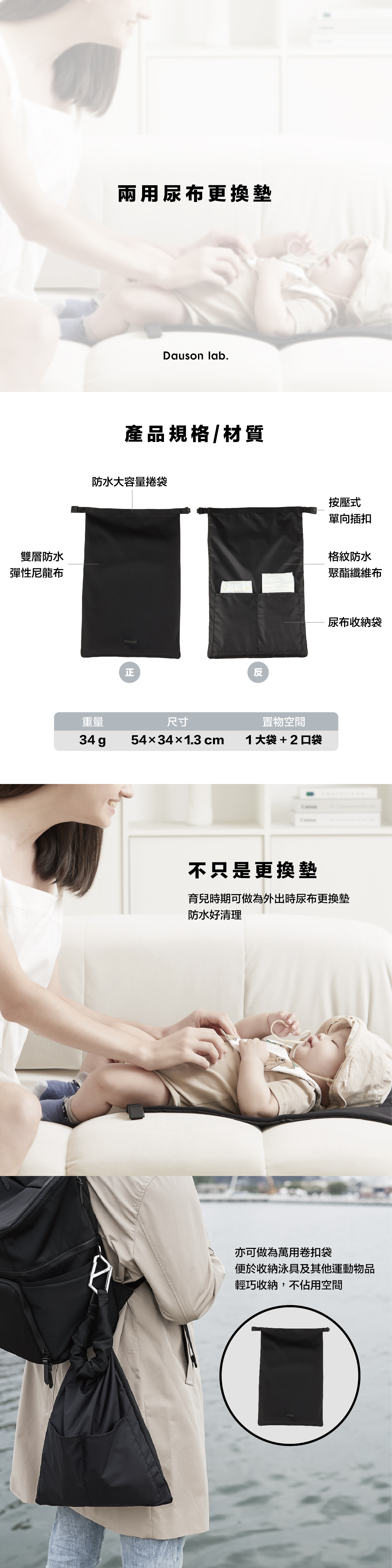 新生兒前期可作為戶外尿布更換躺墊,在孩子不需躺下更換尿布之後可以作為獨立購物袋/衣物袋使用,不因短期需求造成浪費