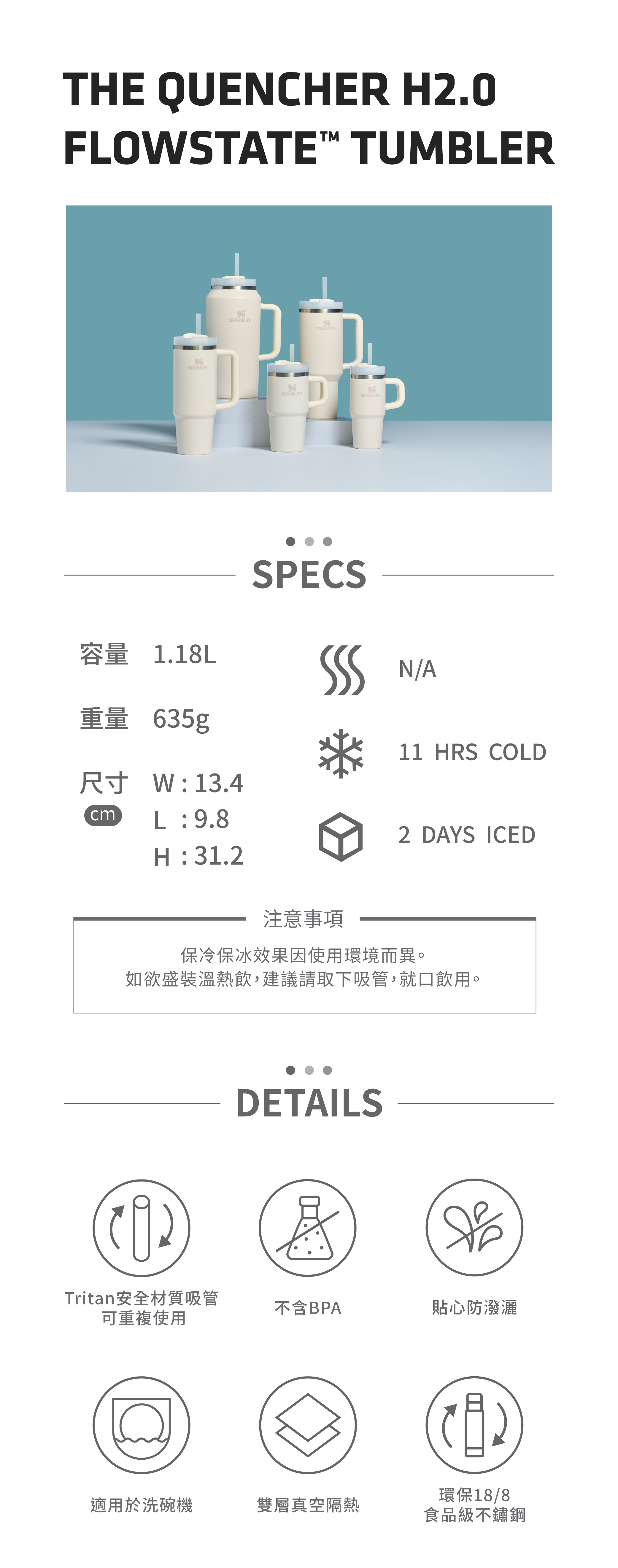 杯身: 18/8 (304) 食品級不銹鋼,不含 BPA